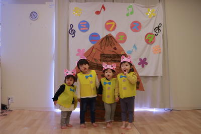 役になりきって、簡単な台詞を言ったり、手振り付きで歌を歌ったりと劇ごっこに取り組んでいます