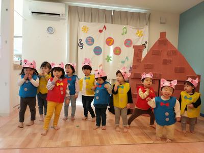 「おおかみをやっつけられた!」と喜んだり、散歩では「このお家はレンガでできてるね!」と発見したりと、楽しむ子ども達です