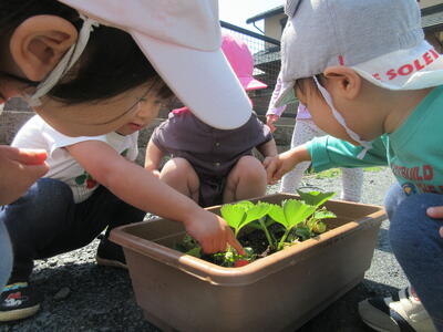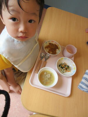 「ちょうだい。」と言うと、ハイ!と保育者にどうぞと渡してくれます。やりとりが出来るようになったことがとても成長したなと感動の日々です。可愛くて何度も繰り返して楽しんでいます。