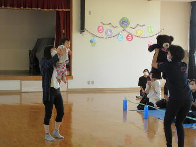 人形劇ファミリーひみちゃ隊の人形劇を鑑賞しました。色々な動物の人形が出てきて、「わー」と歓声があがりました。