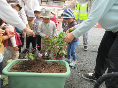 掘れば掘るほど出てくるお芋。2歳児さんだけでなく、1歳児さんも参加して