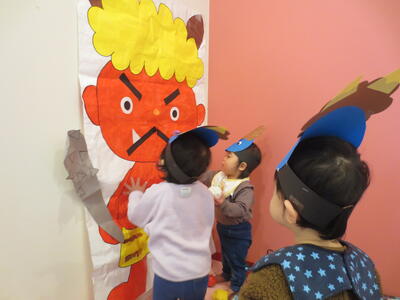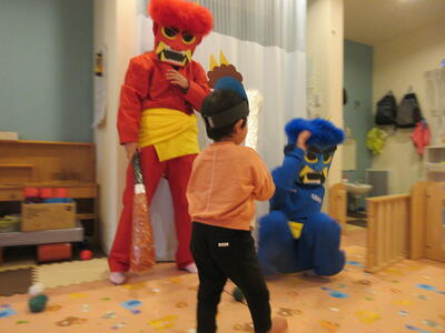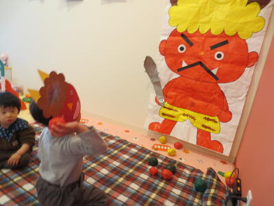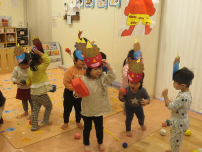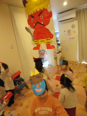 「今日は何の日?」と聞くと「鬼がくる日~!」とか「鬼は外、福は内」って言うんやで~と話してくれる子ども達。