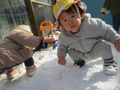 小さい雪だるまを作ったり、雪合戦を楽しみました!