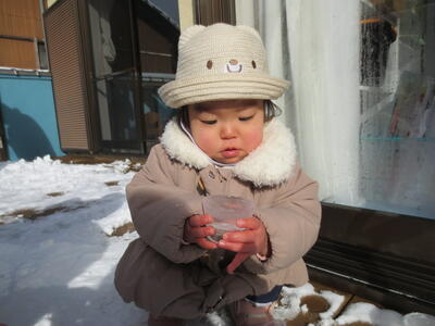 氷を触ると“つめたい”と感じたり、陽にかざすとキラキラしてきれい・・・等