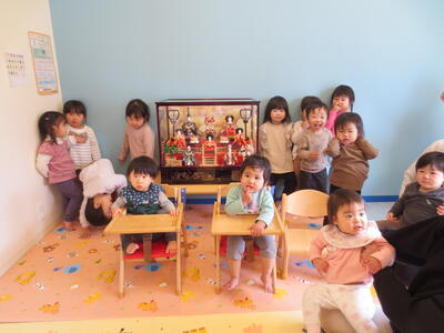 保育園でもお雛様を飾り、みんなで記念撮影📷と歌を歌いました♪