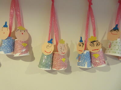 1・2歳児さんは紙コップに千代紙をちぎって貼って着物にしました。☆